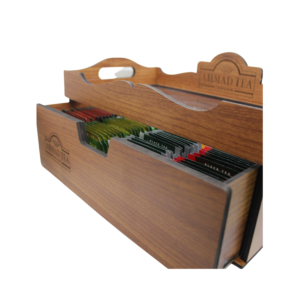The Tea Tray Keeper offers the ultimate in tea excellence. This wooden Tea Tray features Seven compartments to store our finest brews in style.